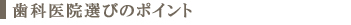 以上の点がチェックのポイントになってくるかと思います。以上の点をもとにあなたに合う歯科医院を探しましょう! |