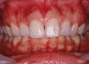 | こちらの患者さまは、まずホワイトニングをおこないました。その結果、前から付けていた差し歯の色が目立つようになったので、ホワイトニング後の歯の色に合わせてセラミッククラウンを装着しました。 |